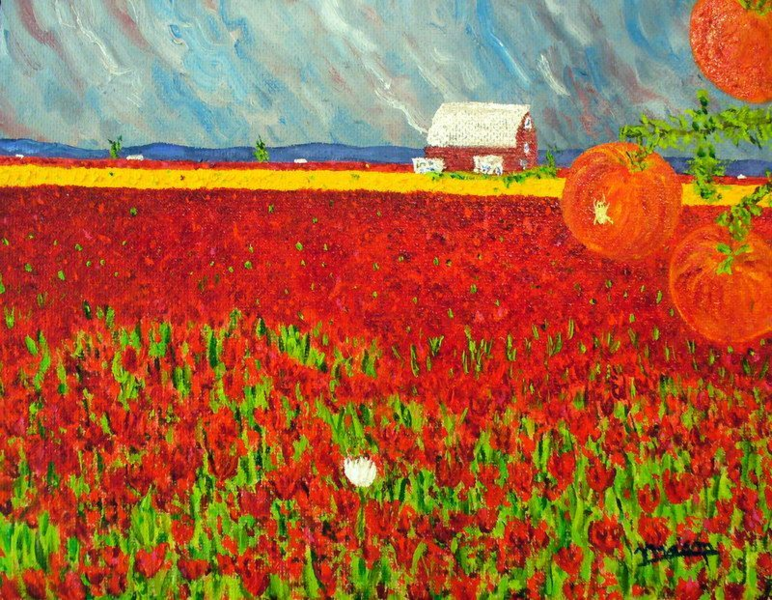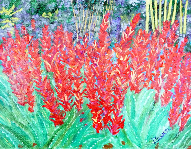 "Iris Fantasy Garden." Oil on Canvas, 24" x 48" . $4,500.00.